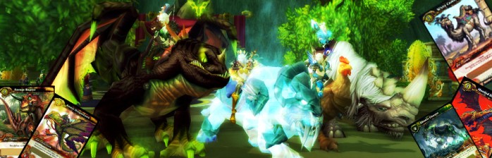 Certamente, muitos de vocês devem estar se perguntando: “Mas que diabos é esse tal de TCG?” – TCG é a sigla para Trading Card Game – Jogo de Cartas Colecionáveis. Para simplificar, é basicamente o jogo Hearthstone na versão analógica. Bem similar também ao jogo Magic: The Gathering. Porém, existe uma versão do jogo baseada em World of Warcraft e o melhor de tudo: algumas cartas do jogo contém prêmios (itens) que podem ser retirados dentro do jogo World of Warcraft também! Entre esses itens, podemos encontrar montarias, mascotes e itens de vanity (ou seja, aqueles itens que servem apenas para diversão/show off).