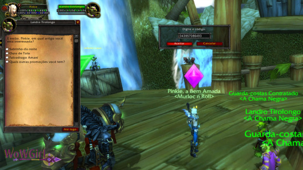 - Por fim, entre no jogo e fale com o PNJ Landro Tirolongo, localizado em Angra do Butim, no Cabo do Espinhaço. Selecione a expansão da carta e o item que irá resgatar, cole o código que você salvou anteriormente (gerado pelo site) e Tadaaam! Parabéns pelo novo item! 😀