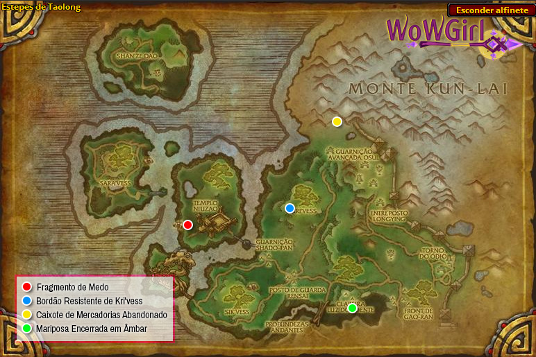 - Fortuna de Pandária: Encontrar 5 Tesouros de Pandária.