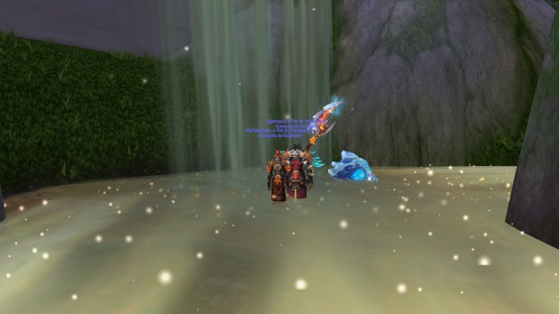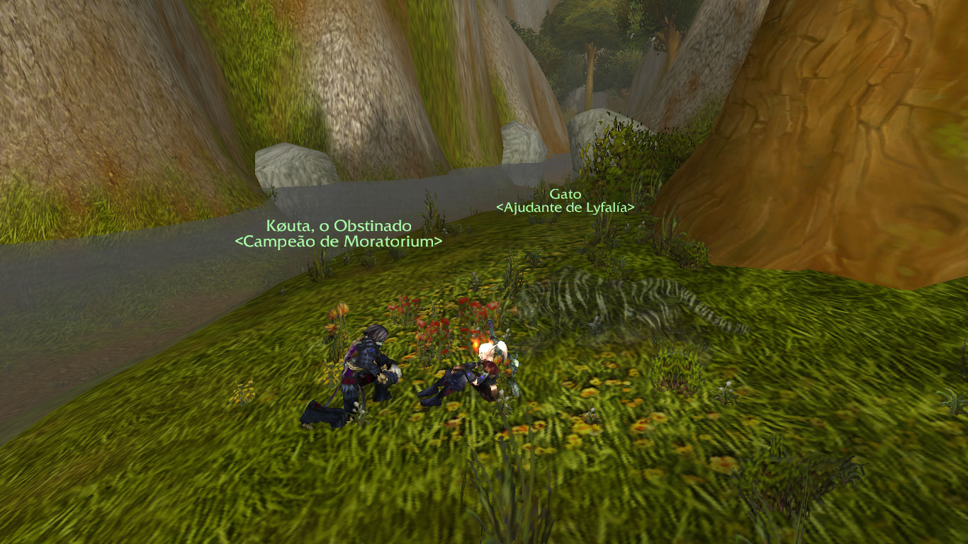 Meu nome é Ariel. Conheci a Maah através de um amigo comum no jogo, numa época que eu andava completamente sem objetivos no jogo. Esse amigo me convidou pra fazer uma masmorra junto com uma amiga dele, depois que terminamos ficamos um bom tempo conversando, e marcamos de jogar juntos no dia seguinte. No começo éramos apenas conhecidos do jogo que gostavam de compartilhar tempo juntos, ela animada por alguém ensinar mais sobre Wow e seus lugares, e eu feliz por ter uma companhia agradável para passar o tempo. Ambos tínhamos bem firme a ideia que seriamos apenas amigos, nada mais, já que ela não confiava em relacionamentos ingame e eu não tinha esse tipo de interesse também. Começamos a jogar juntos diariamente, eu fazendo minhas dungeons e raides antigas, farmando minhas conquistas, e ela indo de carona, aproveitando que eu tinha um foguete de dois lugares, pra ir conhecendo novos lugares que nunca tinha visitado, aproveitando também para aprender mais sobreo jogo enquanto passeávamos. Depois de algumas semanas nessa rotina, comecei a notar que eu sentia falta quando ela não estava junto de mim, que fazer meus passeios pelos mapas não tinha a mesma graça, mas fiquei em silêncio já que prometemos ser apenas amigos. Um belo dia notei que ela estava mais quieta do que o normal, ela nunca foi de falar muito, mas parecia excepcionalmente amuada naquele dia. Resolvi então fazer algo diferente, ao invés de entrar em masmorras cheias de monstros pra matar, levei ela a um dos meus lugares preferidos dentro do jogo: uma cascata cima das montanhas, próximo a Ventobravo, um lugar pra simplesmente… contemplar.