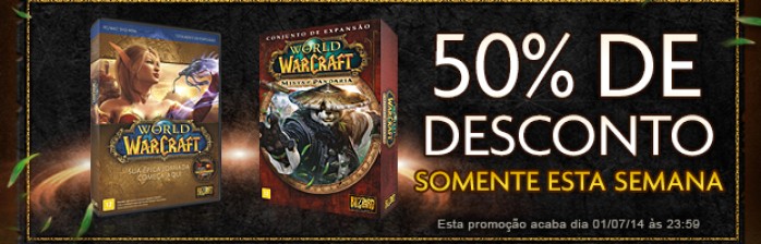 Aproveite essa semana para comprar o World of Warcraft com 50% de desconto, tanto no Battle Chest quanto no Mists of Pandaria! O Site Oficial publicou essa super promoção, que vai de hoje até dia 1 de Julho, a meia noite. O Battle Chest está saindo por R$14,95 e o Pandária por R$24,95. Lembrando que o Battle Chest garante um primeiro mês de graça, então nada de desculpinha que não quer comprar o jogo porque tem medo de comprar e não gostar. Além do Starter Edition, você ainda pode ter um mês inteirinho pra testar o jogo completo comprando só o Battle Chest 🙂