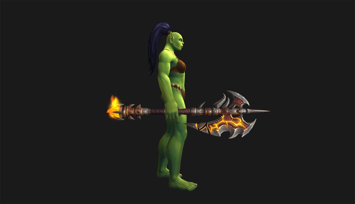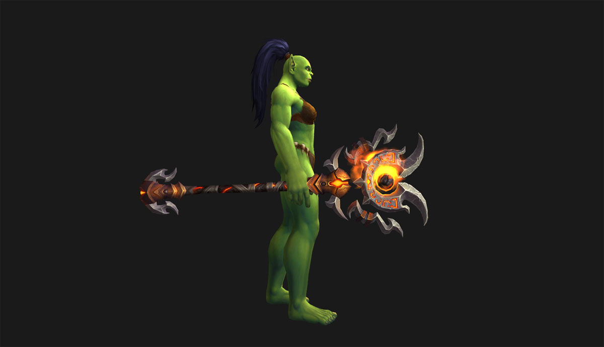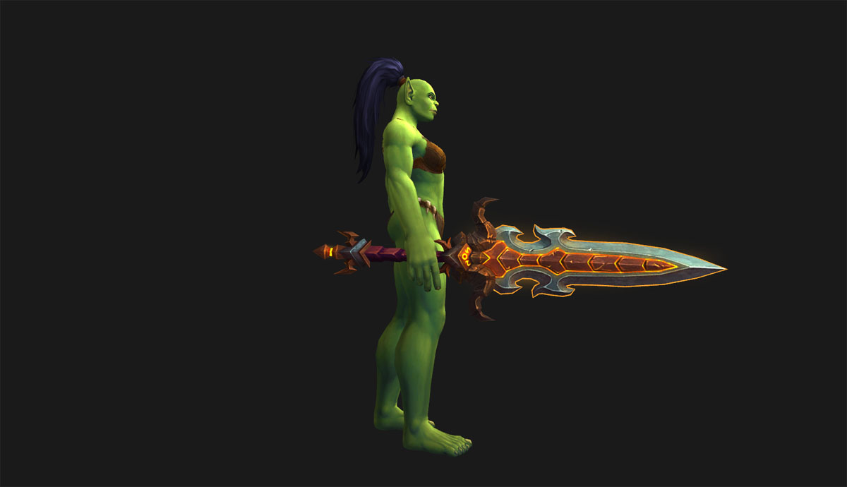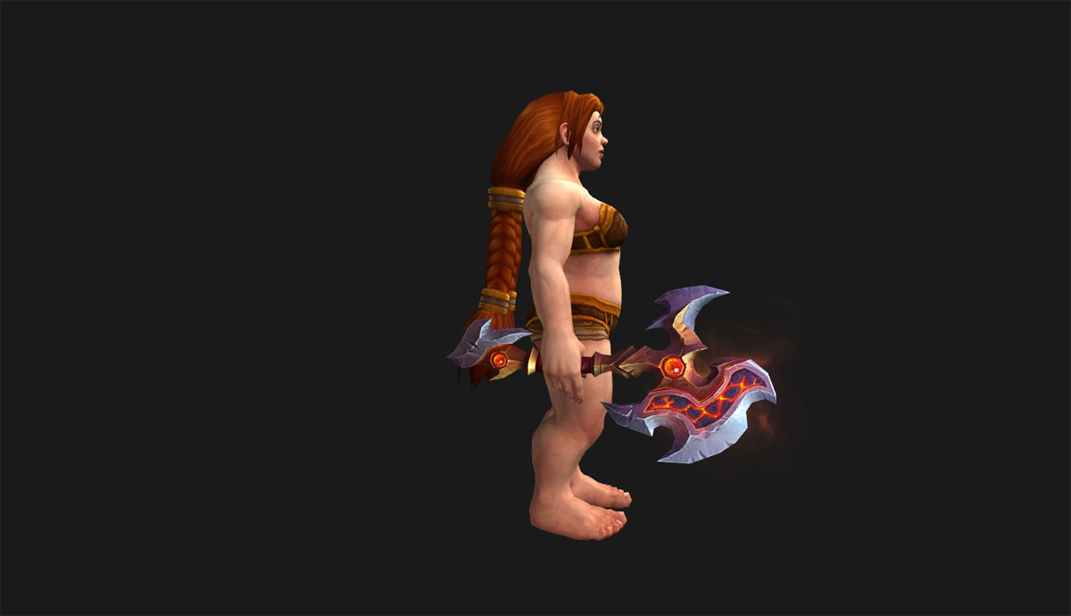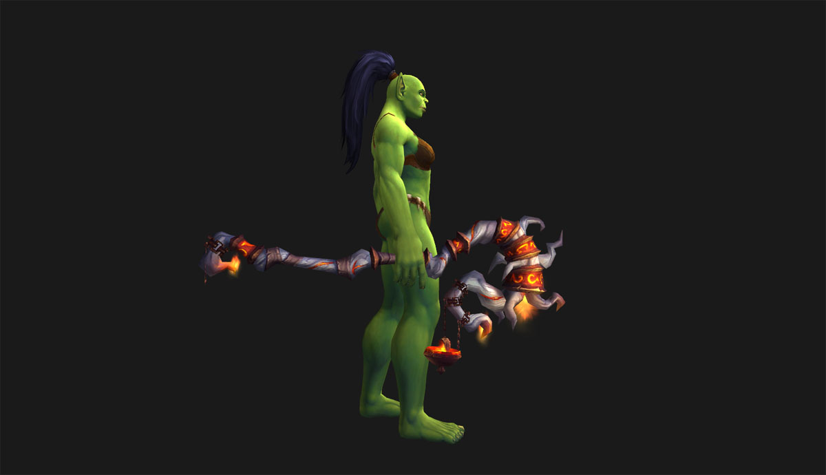 - Apesar do fato de nenhuma arma lendária poder ser usada para transmog, nas Terras de Fogo existe uma ‘réplica’ da Sulfuras, a Mão de Ragnaros de Núcleo Derretido: a Sulfuras, a Mão Extinta que cai do último chefe, Ragnaros. A aparência da arma é praticamente a mesma da sua ‘versão’ lendária e pode ser usada para transmog! No exemplo abaixo, a guerreira Mitraa ~ostenta~ seu transmog com duas Sulfuras graças a habilidade passiva de Guerreiro Fúria, o Punho de Titãs.