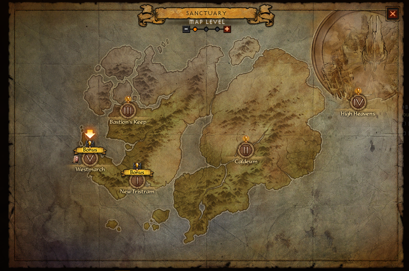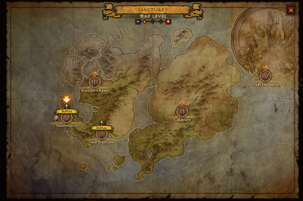 Você tem acesso a todas as partes do jogo! Várias missões se encontram espalhadas ao longo do mapa e a cada missão uma Caçada é concluída. Como recompensa você ganha um alto valor de experiência e tesouros. A cada 5 Caçadas completas em cada ato, você ganha um baú Nefalem com várias recompensas e até mesmo itens lendários.