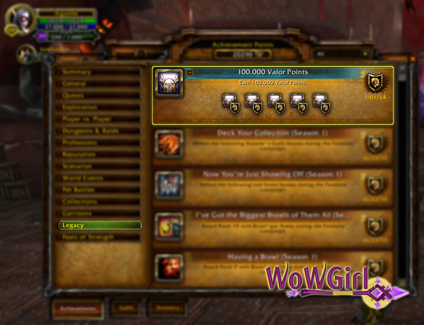 Enquanto pesquisávamos as novidades que vieram com a build mais recente do Beta de Warlords of Draenor, observamos que a conquista 100.000 Pontos de Bravura está agora na categoria Legado, uma nova categoria de conquistas que será lançada junto com Warlords of Draenor e é destinada a conteúdos passados e que não podem mais ser obtidas. Veja mais informações sobre a nova categoria de conquistas Legado.