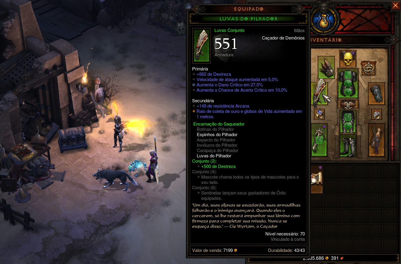 Vale lembrar que alguns itens lendários e itens de conjunto, como os específicos de classe mencionados acima, dropam apenas na dificuldade Suplício de 1 a 6. O mesmo vale para o drop de instruções de itens de conjuntos, que podem ser aprendidas no ferreiro (mais detalhes sobre o ferreiro adiante).