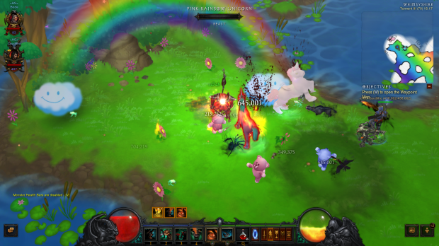Durante o processo de desenvolvimento de Diablo 3, alguns críticos comentaram que o jogo estava “Muito colorido” e não apresentava o aspecto sombrio dos seus antecessores. Como uma brincadeira, foi criado o “Mundo dos Pôneis”, um ambiente extremamente colorido onde você combate Pôneis cor-de-rosa entre flores, bolos e doces! Com o lançamento do jogo a crítica foi retirada, mas a piada teve uma resposta bem positiva!