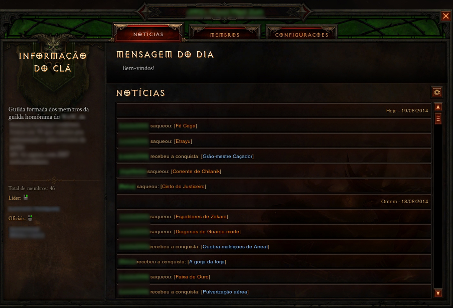Você também pode na aba “Notícias” ficar de olho nos últimos acontecimentos de seu clã, onde são reportados os principais feitos dos membros que nele estão. Nela você também pode ver o número de membros do seu clã, a mensagem do dia, e as informações que o líder do clã compartilhou com os demais membros.