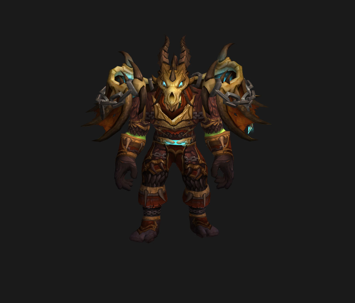 E fica a dica de transmog para os Druidas! Se você tem essa ombreira : Guarda ombros Do Curandeiro das Chamas e esse cinto: Cinturão do Vento Flamejante (ambos podem ser conseguidos ao derrotar o chefe Ordos, na ilha perene), e está querendo um torso que combine com eles, o de Dragon Soul fica bem bonito, olha só: