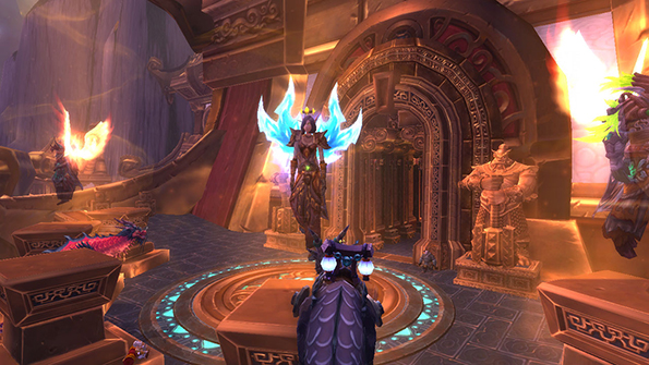 Esse negócio de “filhos” pegou nessa expansão, né?. Wrathion, o príncipe negro, é o único Dragão Negro livre da corrupção dos Deuses Antigos e que ainda está vivo. E ele é simplesmente o filho de quem? De Asa da Morte, o vilão da expansão anterior, Cataclysm. E o melhor: ele é o responsável pela obtenção dos itens lendários da expansão. Lembro-me da tortura que era juntar Pontos de Bravura para a missão Um Teste de Bravura ou farmar signos para a missão A força de seus inimigos. Passei semanas e semanas e parecia que não acabava nunca. Mas a recompensa chegou. Quem não se sentiu o máximo ao ver o holograma de seu personagem no Palácio Mogu-Shan, que atire a primeira pedra!