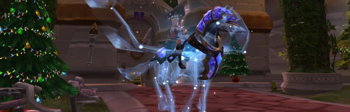 Essa com certeza será sucesso nesse Natal! É uma montaria nova do WoD, que vem com saque 100% do Nok-Karosh em Serra Fogofrio. O problema é que vem apenas 1 montaria para o grupo e você precisa de pelo menos umas 8-10 pessoas para derrotá-lo. Uma ideia bacana é fechar um grupo de amigos e ficar farmando até todos conseguirem ou tentar a sorte no roll em um grupo aleatório. Várias pessoas organizam e se reunem para esse tipo de farm, por ser algo bastante garantido. O tempo de respawn do Nok é bem rápido (de 10 a 45 minutos), o que facilita bastante. Ele pode ser encontrado nas casas de leilão pela quantia de aproximadamente 25k. Você pode conferir mais informações sobre essa montaria (como por exemplo sua localização no mapa) no Guia de Raros do WoD.