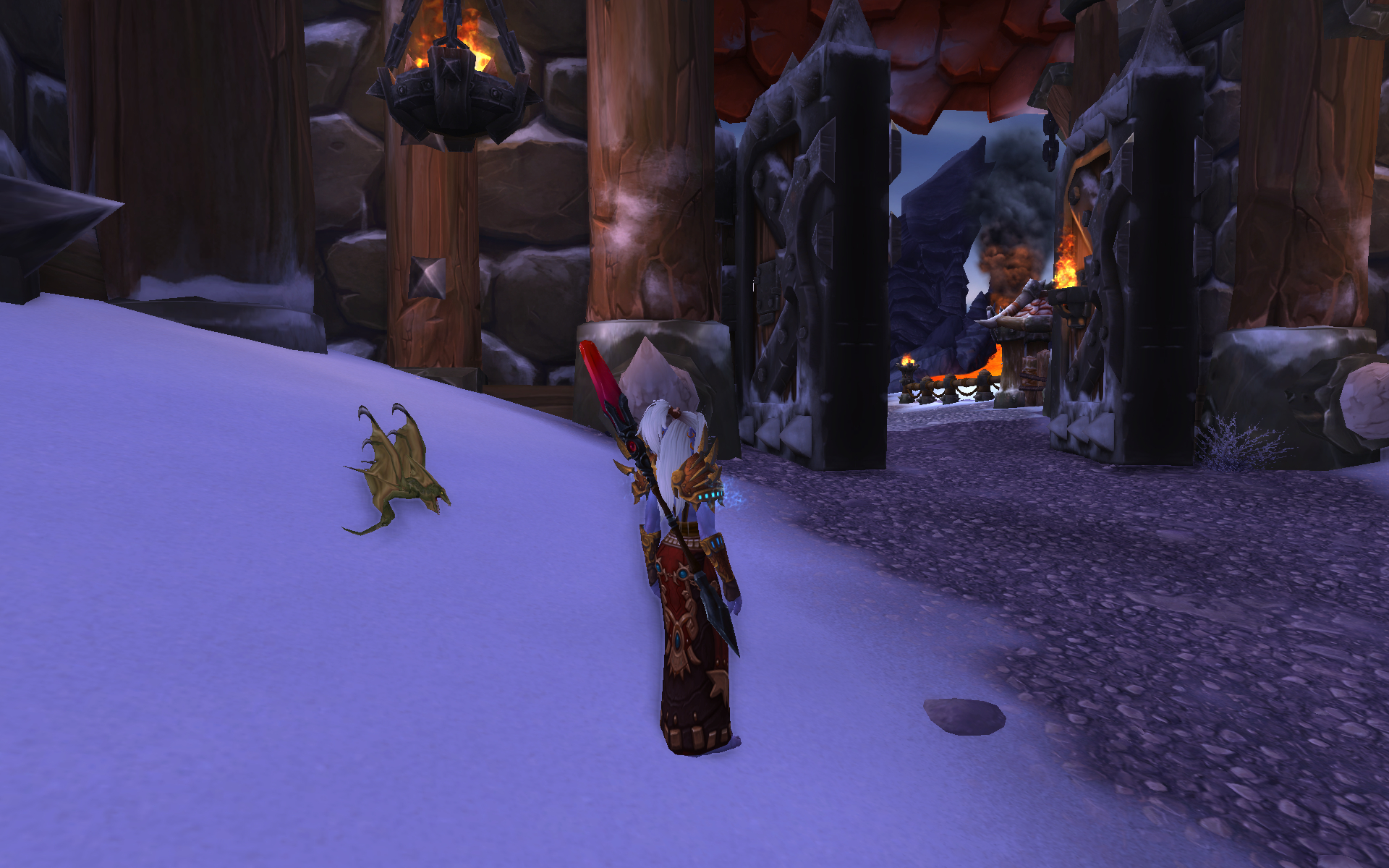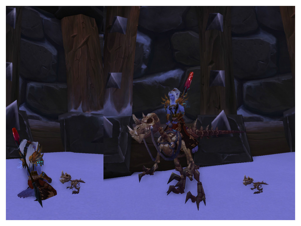 Raptor fossilizado: Amor de montaria, né? Gosto de usar especialmente nos personagens da Aliança, já que não existe nessa facção a montoeira de raptors que tem na Horda, mas de qualquer forma é linda. E notou alguma semelhança com o mascotinho filhote fossilizado? Aw, fofura, dá pra levar a família pra passear.