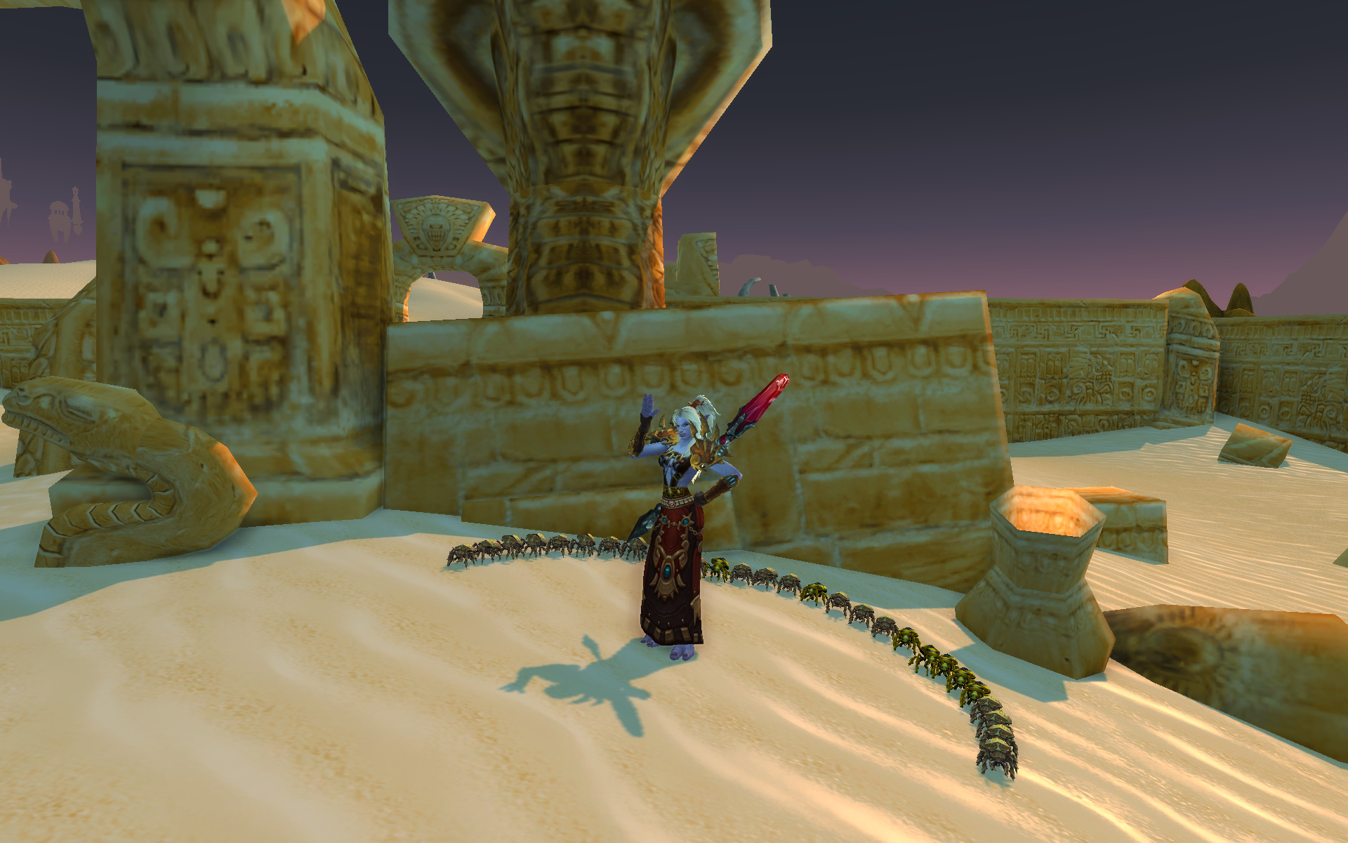 Cetro de Azj’Aqir: ensina a evocar o sensacional Tanque de Batalha Qiraji Ultramarinho. Se tem uma coisa pela qual vale a pena lutar, é essa montaria. Claro, ela vai exigir muito fragmento Tol’vir, tempo, frustrações sem fim e paciência infinita, mas tirando isso…