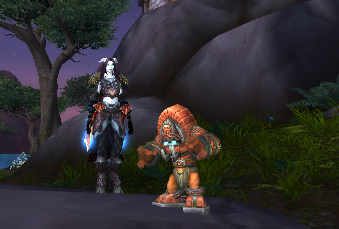 Conjunto de Estátuas de Druida e Sacerdote: artefato Noctiélfico. Serve de holofote pra você mostrar seu transmog novo e ostentar no meio do povão! risos