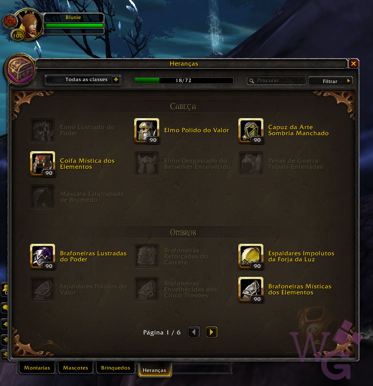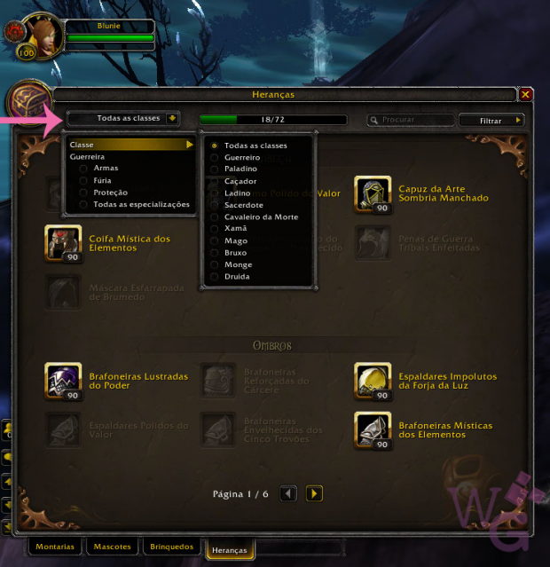 Hoje eu loguei no PTR pra conferir de perto o que vai ser essa aba e mostrar pra vocês como vai ser, contar algumas novidades e já adianto uma coisa: É a coisa mais maravilhosa do universo. Se você, assim como eu, vivia perdendo seus itens de herança, não lembrava em que banco ou em que personagem o seu item estava ‘largado’, no próximo patch, seu problemas acabaram! ♥