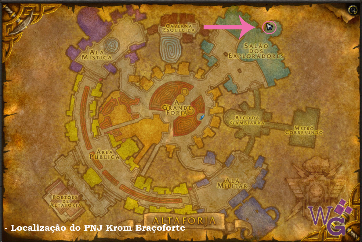 Já o PNJ da Aliança é o Krom Braçoforte e pode ser encontrado em Altaforja:
