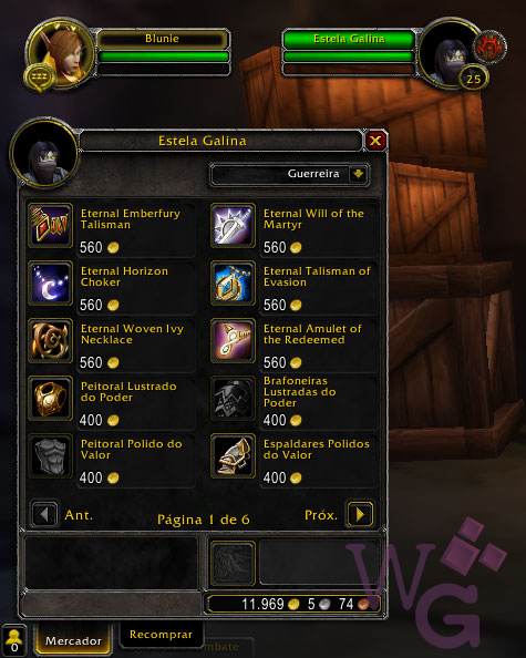 Em relação aos preços dos itens eu pude perceber que não custam muito caro, mas eu também percebi que os preços da Horda eram diferentes do preço da Aliança para mim. Eu acredito que os preços variem de acordo com a sua reputação com a facção local, já que minha personagem da Horda é Exaltada e minha personagem da Aliança é Neutra.