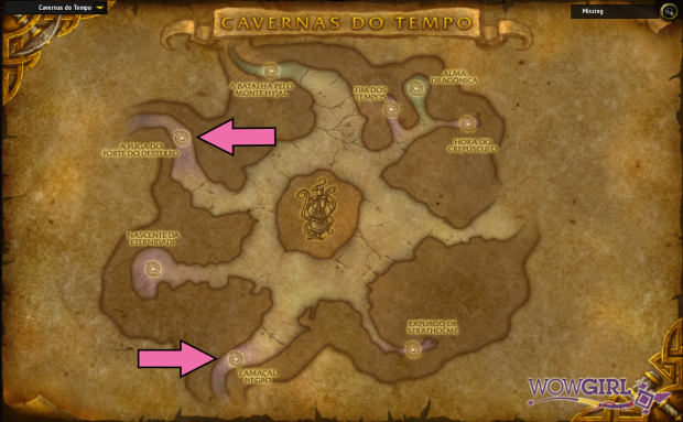 Para chegar nas Cavernas do Tempo é muito fácil, basta você pegar um portal até Dalaran e lá, na Cidadela Violeta, você vai pegar o portal que te leva direto para as Cavernas do Tempo.