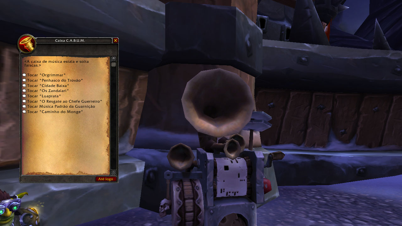 Agora, se você for Horda, a missão inicial é Grave bombando. Concluindo-a, você receberá o item Baú de Rolos de Música Empoeirados, que contém as seguintes músicas: