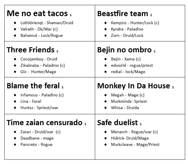 Oito grupos de arena 3×3 ranque alto irão concorrer ao prêmio de alguns montantes de ouro virtual. Foram convidados para participar do evento, o PvPLab que ficará por conta da apresentação e narração, que será realizada pelo Jiraya e o Neves Tudão. Alguns jogadores são gladiadores, como o ‘Cocojambo’ e o ‘Murkmindz’ que inclusive foi duas vezes rank 1. Outros jogadores que participarão, pegarão gladiador nesta season.