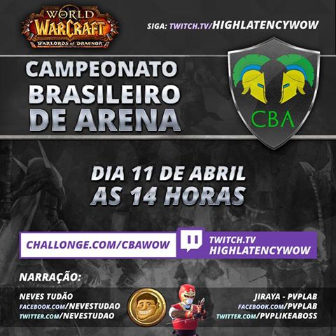 Com a finalidade de aproximar e movimentar a comunidade brasileira de PvP, a edição piloto do CBAWoW (Campeonato Brasileiro de Arena do WoW) acontecerá dia 11 de Abril a partir das 14h.