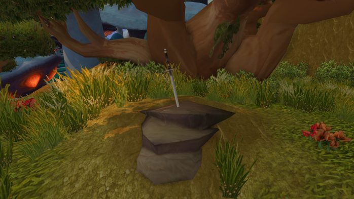 Por fim, essa Conquista pode ter duas referências, depende de qual você conhece e em qual idioma você joga. Em inglês ela é Espada na Pedra, referência ao livro de mesmo nome de 1938 escrito por T.H.White sobre a lenda do Rei Artur.