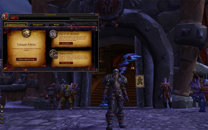 O Guia de Aventuras oferece sugestões personalizadas considerando um grupo de variáveis, como o nível de personagem, nível de item, progresso de missões, conquistas e mais. O Guia é interativo, permitindo que jogadores aceitem missões relevantes ou busquem grupo através do Buscador de Grupos com apenas um clique.