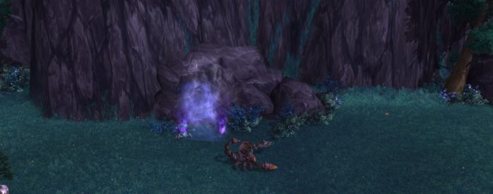 Ao contrário dos raros de montaria a que estamos acostumados ele não nos dá a graça da presença em pessoa, mas tem um sistema parecido com o do Camelo Cinza de Uldum (tá aí a semelhança). Você consegue ela através de um portal que pode aparecer em alguns pontos específicos por toda Draenor, e ao clicar nele você é levado para um cenário com o pobrezinho do Rasga-Caos morto e seu ovo, que é o que dá a montaria. 😀 Por não ser necessário matar ninguém você pode usar até um personagem de nível baixo!