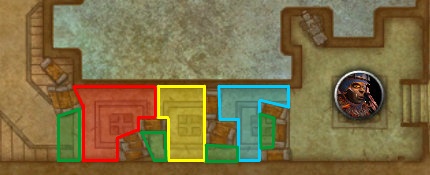 Vermelho, Amarelo e Azul são os locais onde o ataque é feito, as partes verdes são os locais seguros.