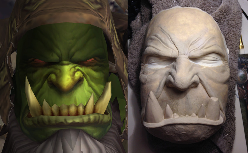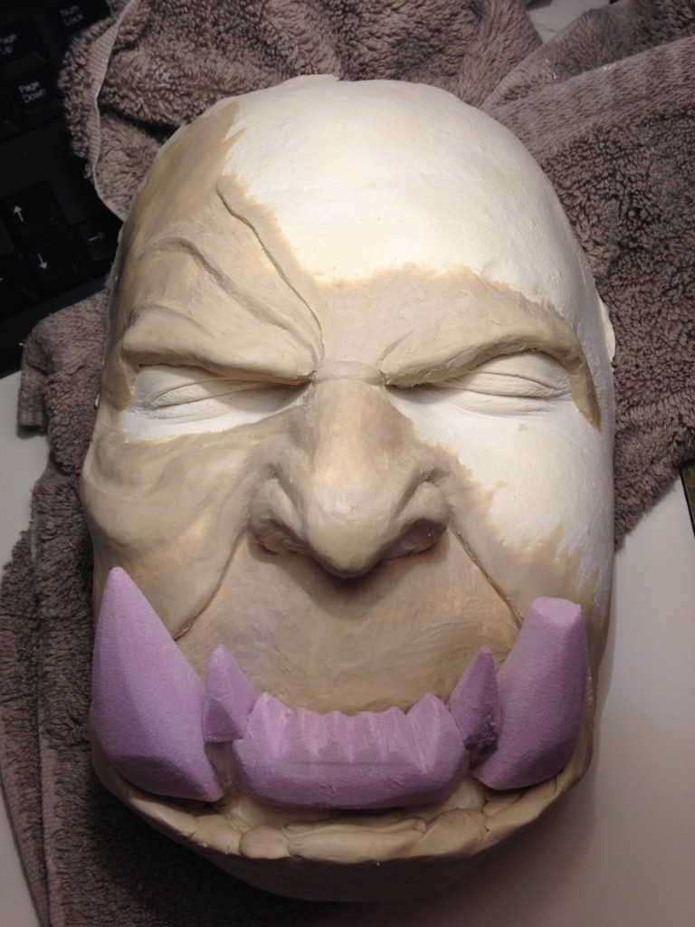 Não tem fotos do cosplay dele pra mostrar ainda, buhhh! Mas gostaria de compartilhar com vocês o projeto da Laurel, que está trabalhando em uma versão do Gul’dan para a BlizzCon desse ano. Se você tem curiosidade de saber como é o processo de criação de um cosplay dessa complexidade, o site dela é um achado! Ela não atualiza com tanta frequência, mas eu passo por lá sempre e já to ansiosa pra ver o resultado de tudo. Olhem algumas fotos do processo de criação da máscara do cosplay: