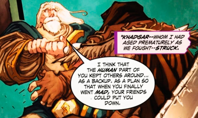 Outra coisa que aconteceu foi o relacionamento novo de Gul’dan e Hadggar. Por todos os anos que Hadggar ouvira falar de Gul’dan, ele jamais tivera uma interação se quer com o orc – aliás, Gul’dan morrera antes de que Hadggar tivesse chance de conhecê-lo, o que torna muito estranha a obcessão do mago com o bruxo orc. Hadggar tinha mais contato com o crânio de Gul’dan do que com o orc em si.
