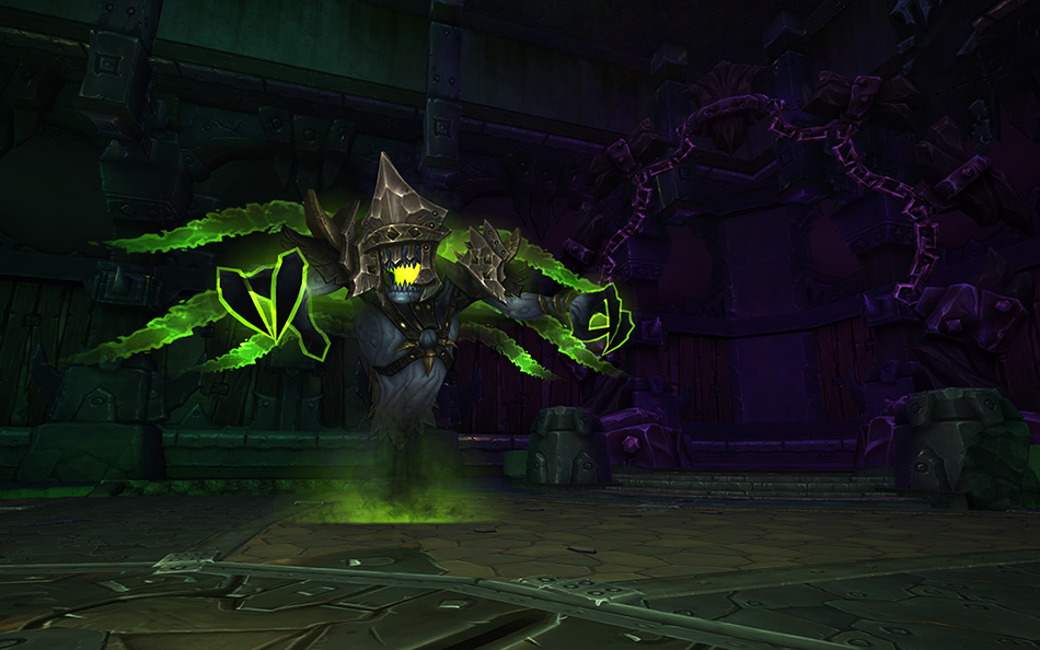 Observações do Designer: Outro nome já conhecido, Socrethar representa um dos líderes dos Sargerei com quem os jogadores lutaram em Talador. Sua alma está escondida em um construto, uma versão corrompida do primeiro chefe de Auchindoun, dando-nos oportunidade de brincar com uma ideia de chefe que não víamos desde Violâminus, lá atrás, no Covil Asa Negra: e se o jogador puder controlar um chefe de raide e usar todas as habilidades dele por um tempo?