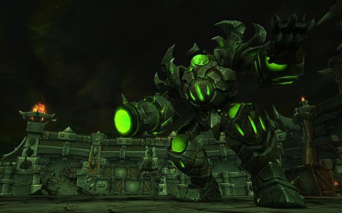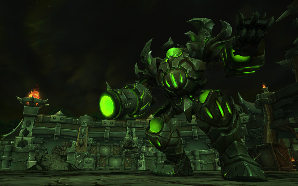 Observações do Designer: Tal como os Espólios de Pandária no Cerco a Orgrimmar, este é um “chefe” de raide sem exatamente um chefe único para derrotar. Os jogadores terão que resistir a ondas de ataque, recuperando munição dos veículos destruídos e usando-a para alimentar os gigantescos Canhões de Fogo do Inferno que ficam no pátio. A vitória é alcançada quando os portões da Cidadela são rompidos.
