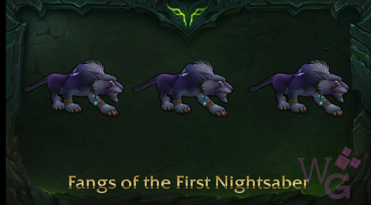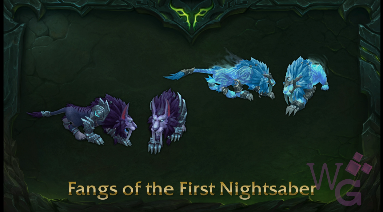 - Fangs of the First Nightsaber: arma para Druidas Ferais que, além de terem aparências distintas como as demais, mudarão a forma de gato para cada variação