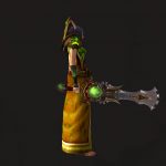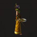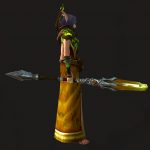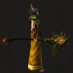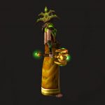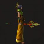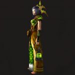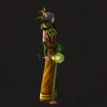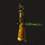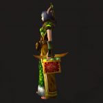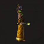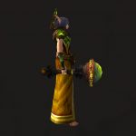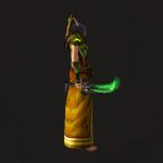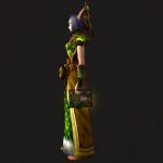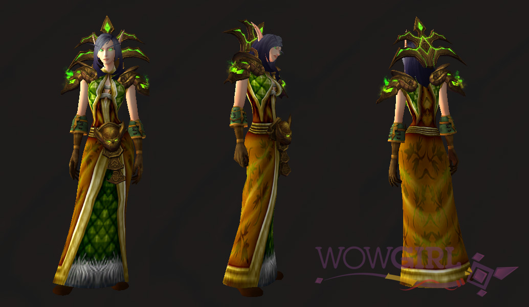 De todas as combinações de torso possíveis para estes três itens, nenhum em minha opinião ficou tão perfeito quanto o Abraço da Serpente de Vento. Este vestido tem exatamente os mesmos tons dourados e verdes do conjunto e fica lindíssimo, tanto em personagens masculinos quanto femininos! De todos os itens do set abaixo, ele pode ser o mais complicado de se obter: ele é saqueado do Avatar de Hakkar, um dos chefes do Templo Submerso (Sunken Temple) no Pântano das Mágoas, e a taxa de saque dele é bem baixa. Peguei o meu em pouco mais de 15 tentativas, que podem ser feitas super rápido. O set completo utiliza os seguintes itens: