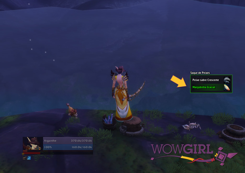 Enquanto pesca na sua Guarnição, você pode saquear qualquer peixe pescável em Draenor e existe uma chance pequena de conseguir uma Manjubinha Glacial (H) ou uma Carpa Quedaluna (A). Uma informação importante: você só pode acumular 5 Carpas ou Manjubinhas por vez em sua bolsa. Caso pegue mais do que isso, você não poderá saqueá-las.