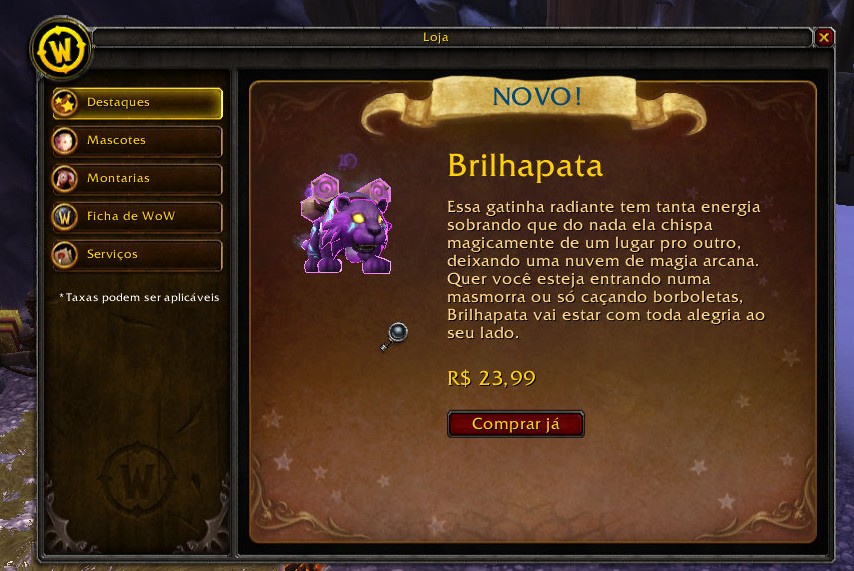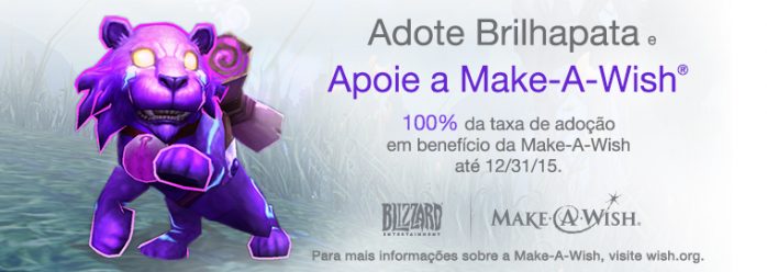 Chegou a lojinha da battle.net o novo mascote Brilhapata, o gatinho de mana! Essa fofura foi apresentada na abertura da BlizzCon e é mais um motivo para comemorar o fim de ano. A partir de hoje até 31 de dezembro de 2015, 100% da taxa de adoção deste pequeno felino apoiará a fundação Make-A-Wish®, ajudando a realizar os sonhos das crianças ao redor do mundo com sérias condições médicas.