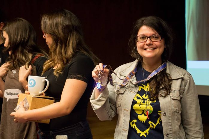 Uma das vencedoras do concurso de Screenshot exibe seu lindo Lanyard de Hearthstone!