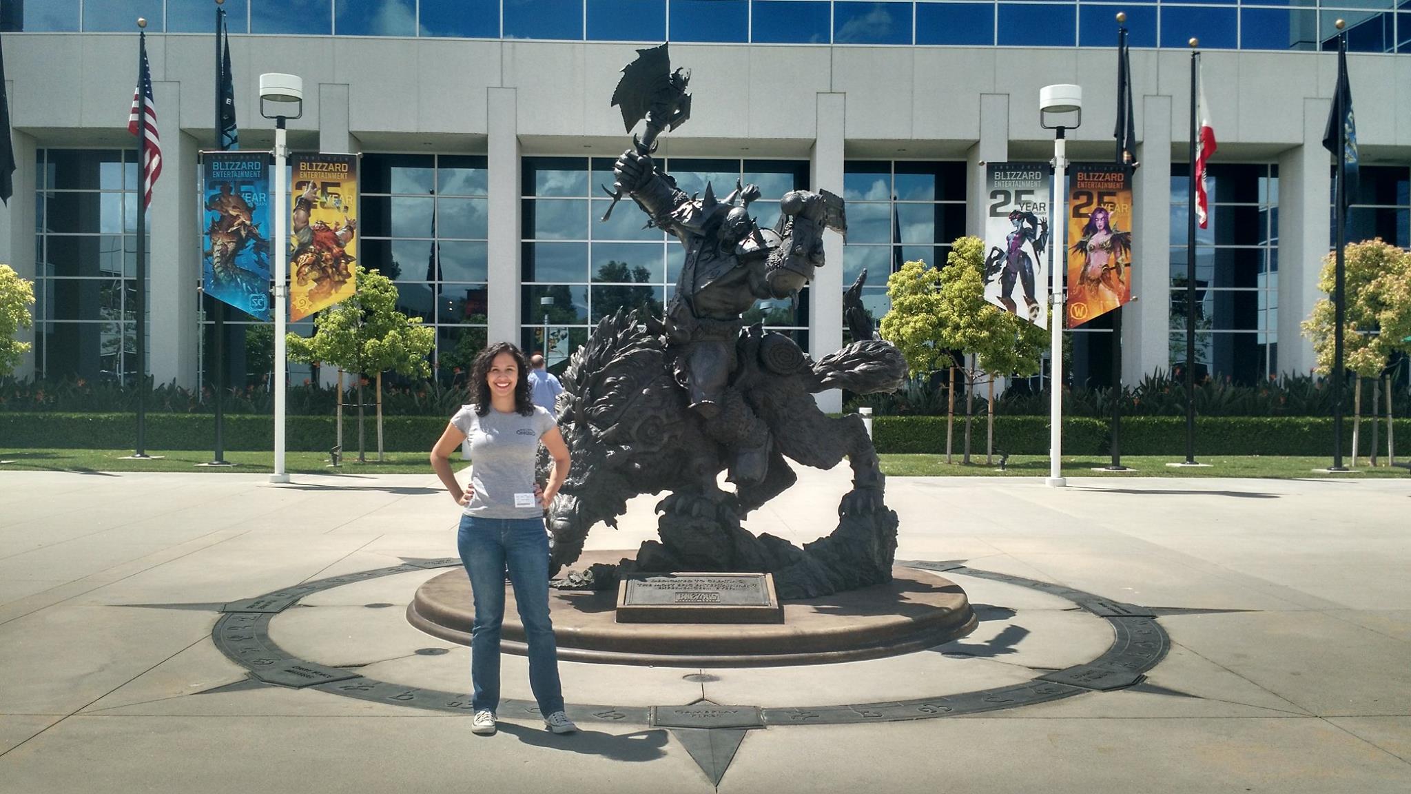 A sede da Blizzard fica a uma hora de Los Angeles, em Irvine. Peguei metrô, trem, e Uber pra poder chegar por lá. Pra se visitar a Blizzard existem duas formas: se inscrever para o único tour mensal que a Blizzard faz, com vagas limitadas (mais informações nesse link, em inglês), ou com um funcionário ‘responsável’, que deve te acompanhar no período que você estiver no campus. Geralmente é dessa forma que jornalistas, amigos de funcionários e fansites (oi!) fazem a visita, e no meu caso, fui recebida pela Lorielyth e pelo Umildassow. Como eles estavam em período de trabalho, a visita foi super rapidinha, passando pelas áreas comuns da empresa. Não é permitido entrar nos escritórios e locais de trabalho dos desenvolvedores, o que é muito justo – eles tem jogos pra lançar! – mas deu pra ter um gostinho daquele lugar mágico! Algumas fotos aqui, e no vídeo aqui no post tem um tour no museu: