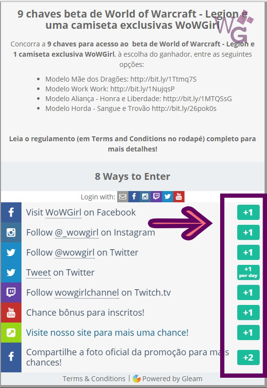 Todos esses passos devem ser feito clicando no “+1”, no site do sorteio, okay?