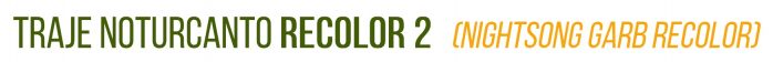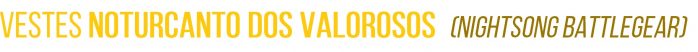 Dos quatro conjuntos Nightsong, dois deles são amarelos. Nesse primeiro, a cor se divide em dois tons: um mais claro e outro bem mais proeminente, quase marrom. Se a gente perceber bem, existem alguns detalhes em verde também (especialmente nas ombreiras), mas são muito sutis.