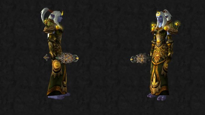 - Ombros: Ombreiras Noturcanto dos Valorosos, Dragonas Noturcanto dos Valorosos e Espaldares Noturcanto dos Valorosos – todos vendidos por Valerie Langrom, em Dalaran, em troca de 1 Espaldares do Subjugador Imprevisível (saque do chefe Thorim)