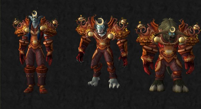 Os dois primeiros conjuntos dessa lista são Tiers, cada um em uma modalidade – ou seja, são específicos para a classe dos druidas, já que sua obtenção se dá através dos tokens que caem em Ulduar. Porém, os últimos dois conjuntos são saqueáveis diretamente dos Chefes dessa raide e podem ser transmogificados por quaisquer das classes que vistam armadura de couro (apesar de terem esse visual druidesco, nada impede que os monges e ladinos possam se enfeitar com eles também).