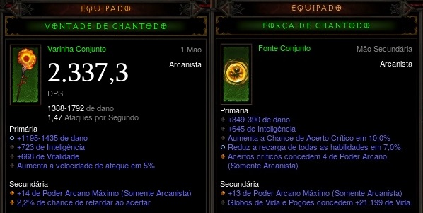 Para o fator de dano vamos considerar os valores de dano presentes na varinha e no orbe, pois são os únicos que possuem: