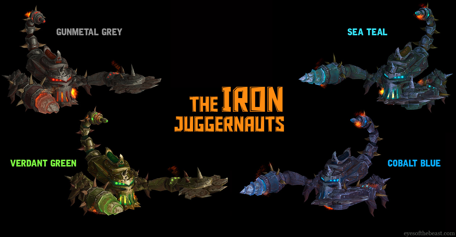 Para quem não lembra, a Jaganata de Ferro é o sexto chefão do Cerco à Orgrimmar, aquele escorpião mecânico gigante que ficava bem na frente de Orgrimmar, além de ser a montaria saqueada do Garrosh Grito Infernal na dificuldade mítica.