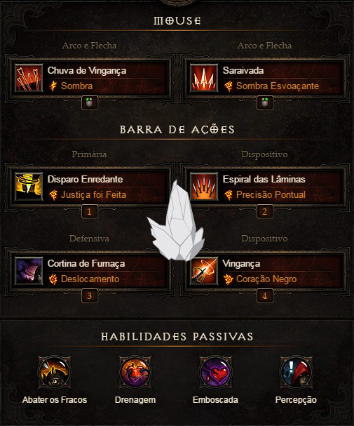 - Manto: Destreza> Engaste> % Chuva de Vingança> Vitalidade> Regeneração de Ódio> Disciplina Máxima> Redução de Dano de Elites