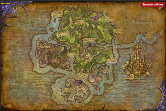 Você também poderá comprar diversas recompensas com a PNJ Marin Bladewing, que fica localizada em Azsuna, conforme imagem abaixo: