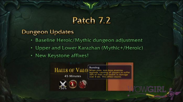 Karazhan também passará por mudanças – na 7.2, a masmorra será quebrada em 2 partes, e com isso poderemos ter Karazhan em dificuldade Heróica, na qual você poderá entrar em fila via Localizador de Masmorras, além de versão Mítico+! A versão Mítica que temos no jogo hoje em dia não será modificada.