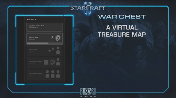 A Blizzcon também trouxe novidades para os jogadores de StarCraft II! A primeira delas é uma nova série de conteúdos de temporada chamada de Baús de Guerra. Os jogadores que participarem terão acesso a um mapa estelar desbloqueável e conforme forem jogando partidas competitivas ou missões co-op online, poderão usar os pontos obtidos para abrir diferentes caminhos no mapa, que irão revelar partes da história, assim como conteúdo digital exclusivo, como visuais de unidades, retratos, logotipos e emojis.