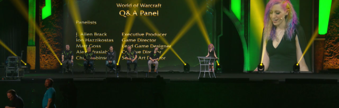 O quadro de Q&A (perguntas e respostas) é um dos eventos mais esperados da BlizzCon, pois é a oportunidade perfeita para os jogadores fazerem importantes perguntas para devs dos jogos sobre diversos assuntos, muitas vezes levando a muitas novidades! O Q&A de World of Warcraft contou com a presença de J. Allen Brack (Executive Producer), Ion Hazzikostas (Game Director), Matt Goss (Lead Game Director), Alex Afrasiabi (Criative Director) e Chris Robinson (Senior Art Designer), e a apresentadora dessa vez foi a Panser do TradeChat! Vamos ver um pouco do que foi explorado nessas perguntas?