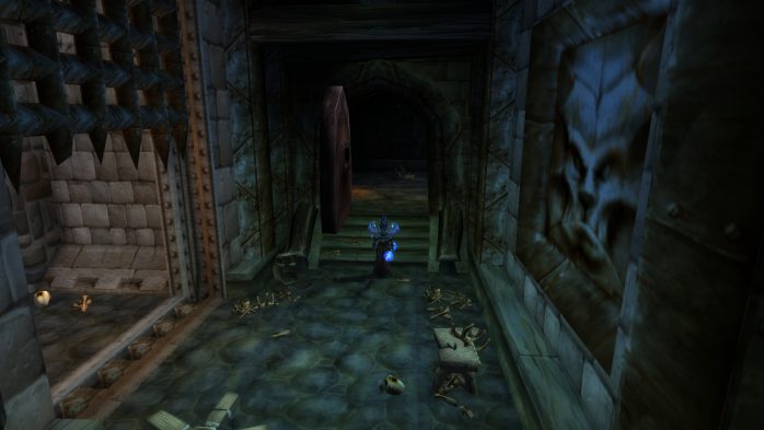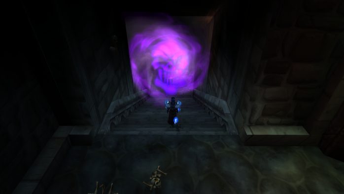 Mas calma lá. Não somos teleportados para dentro da masmorra, mas para dentro da caverna propriamente dita. Claro que a entrada da masmorra fica em algum lugar ali dentro: